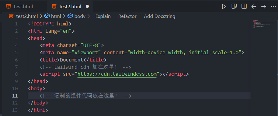 头部,但我们刚刚复制的代码不是完整的 html,只是正文部分(放在 <body>