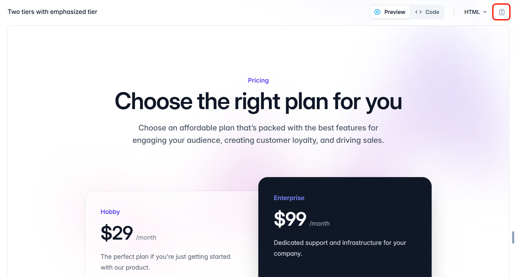 访问官网的试用组件:Tailwind CSS Pricing Sections - Official Tailwind UI Components