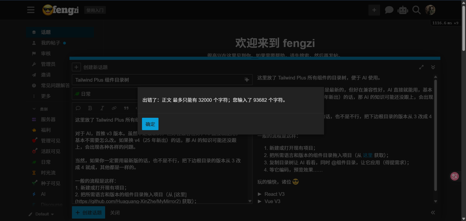 遇到了点问题,本来放的是 React V3、Vue V3、HTML V3 三大块的,但无奈,内容太多,触发了限制: