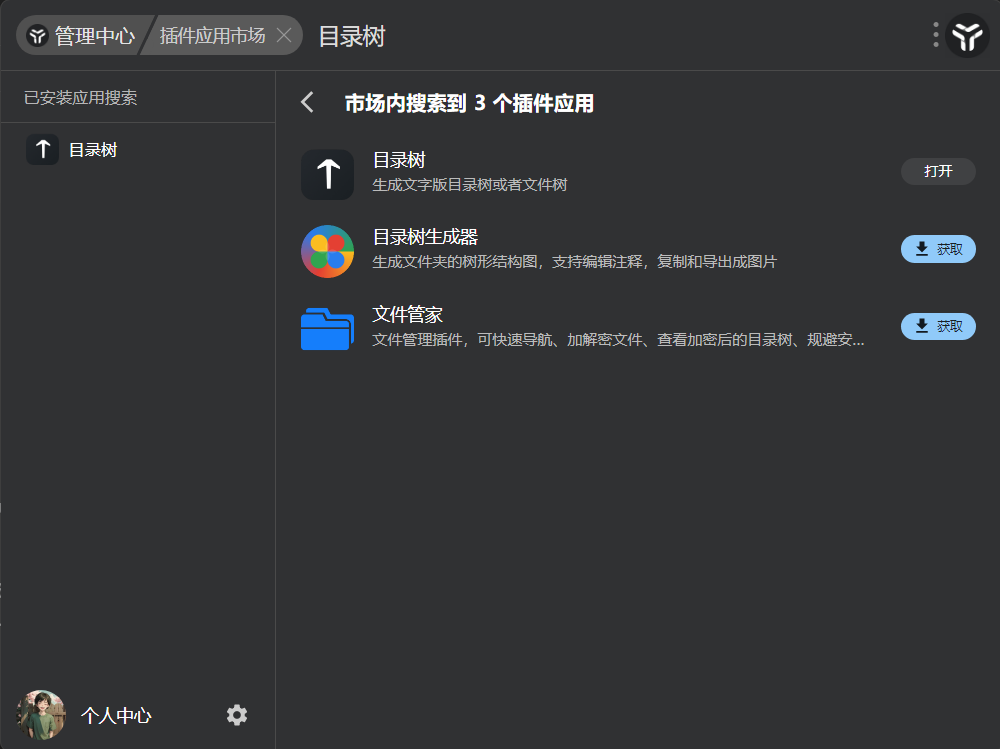 打开 uTools(下载),搜索下载 “目录树” 插件: